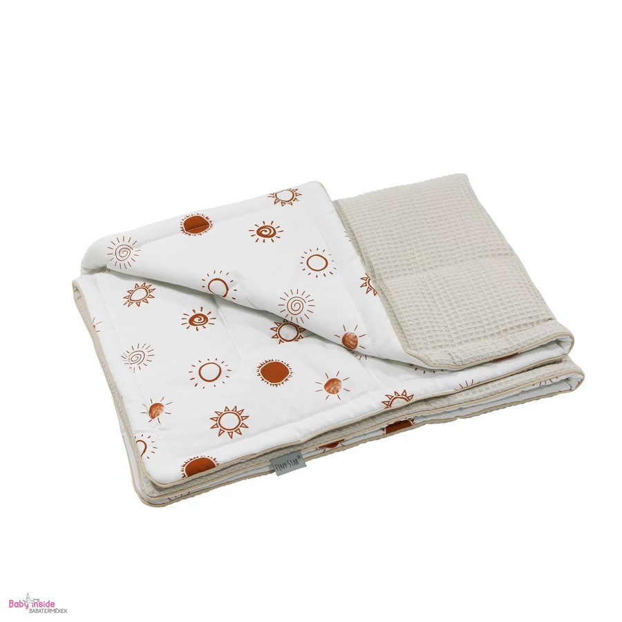 Kétoldalas takaró 75x100-as méretben, kiváló minőségű, puha pamutból és érdekes, 100% pamut anyagból készült waffel anyaggal. Antiallergén töltettel ellátott takaró egész évben tökéletes nyári, hűvösebb estékre, tavaszi sétákra és őszi-téli napokra. Ideális babakocsikhoz, kiságyakhoz (paplanok helyett), vagy alátétként.