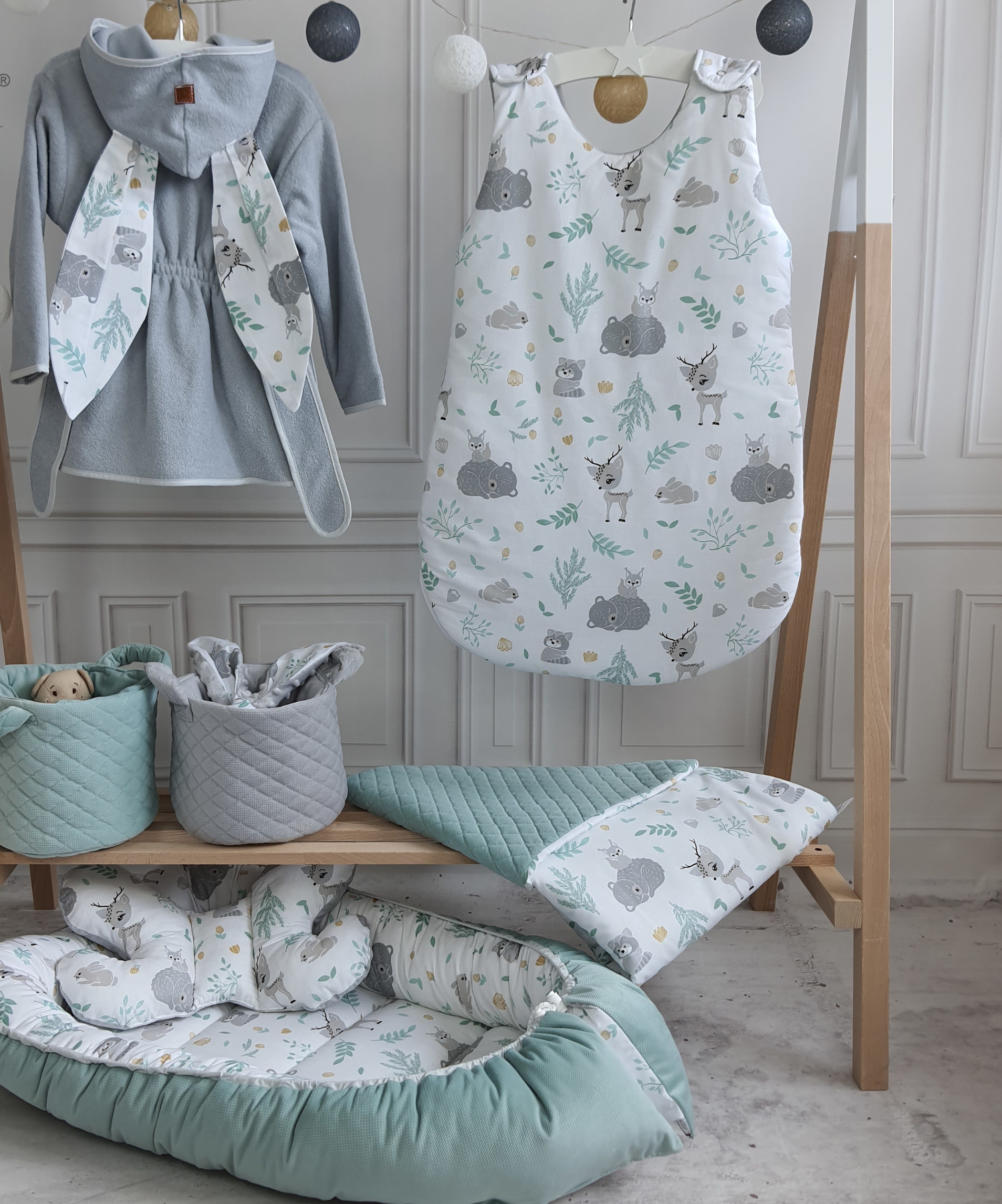 Ha például a kiszemelted egy Forest Friends babafészek, akkor találhatsz hozzáillő ágyneműt, takarót, párnát és sok más holmit. Így az egész babaszoba egységesen fehér és türkiz színekben pompázik majd.